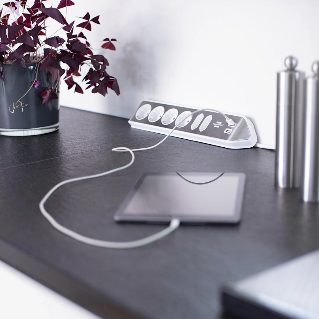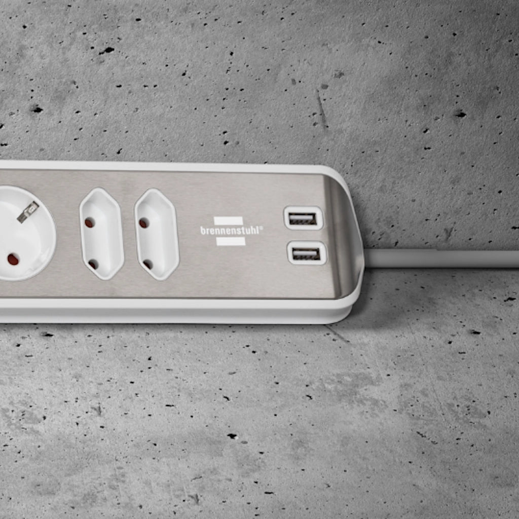 Sie haben Fragen zu dem Produkt Brennenstuhl Eck-Steckdosenleiste 6-fach 2xUSB Edelstahl / weiß (1153590620) ?